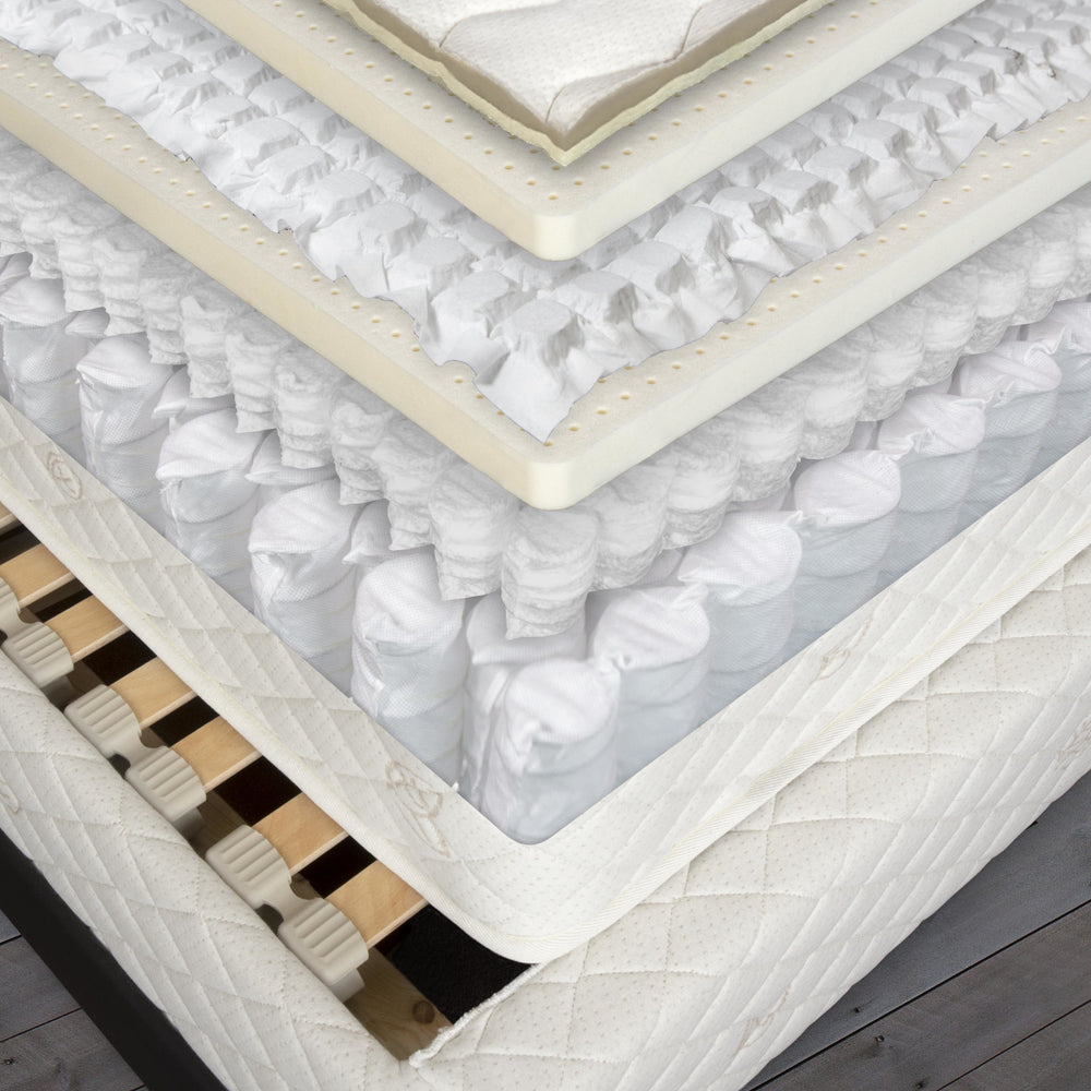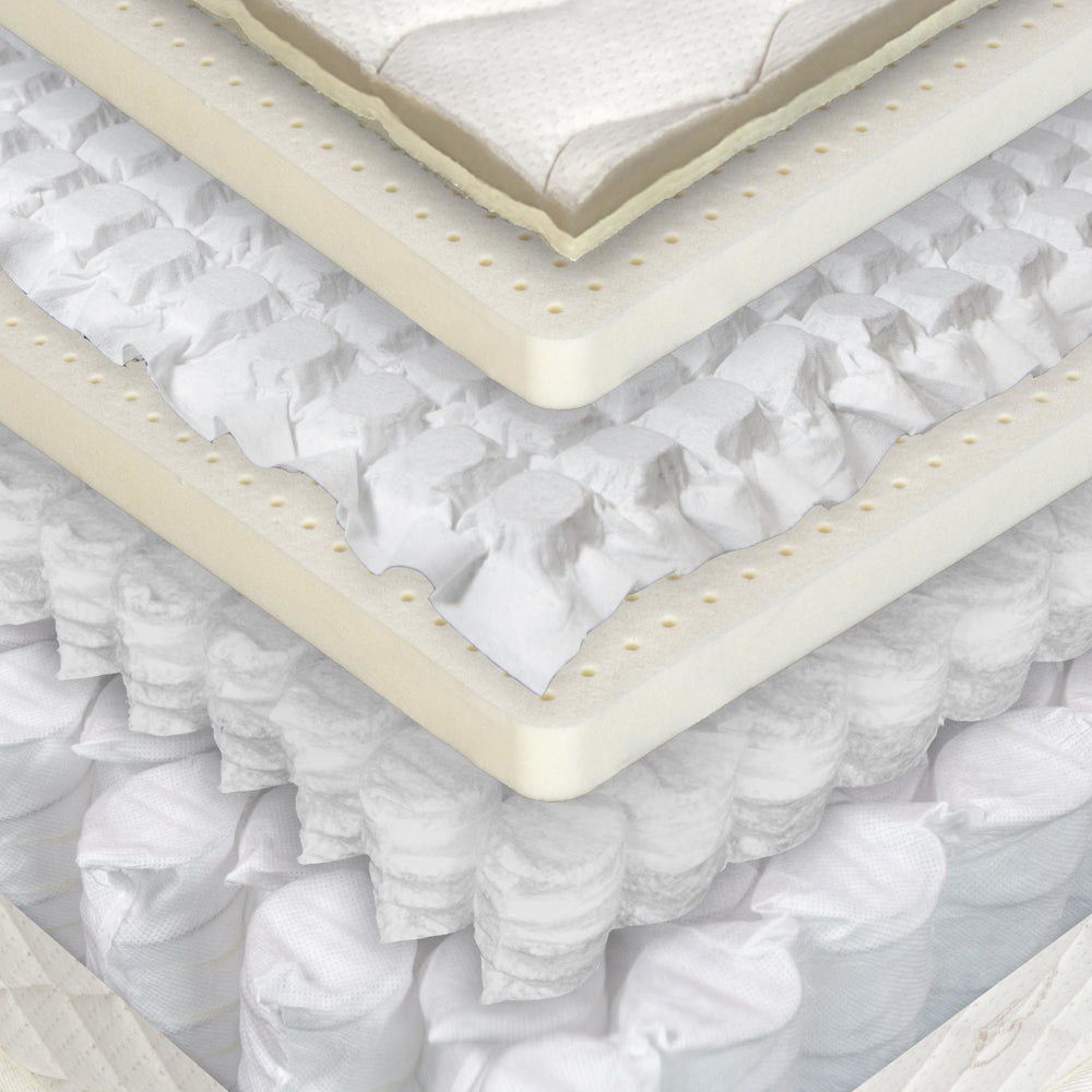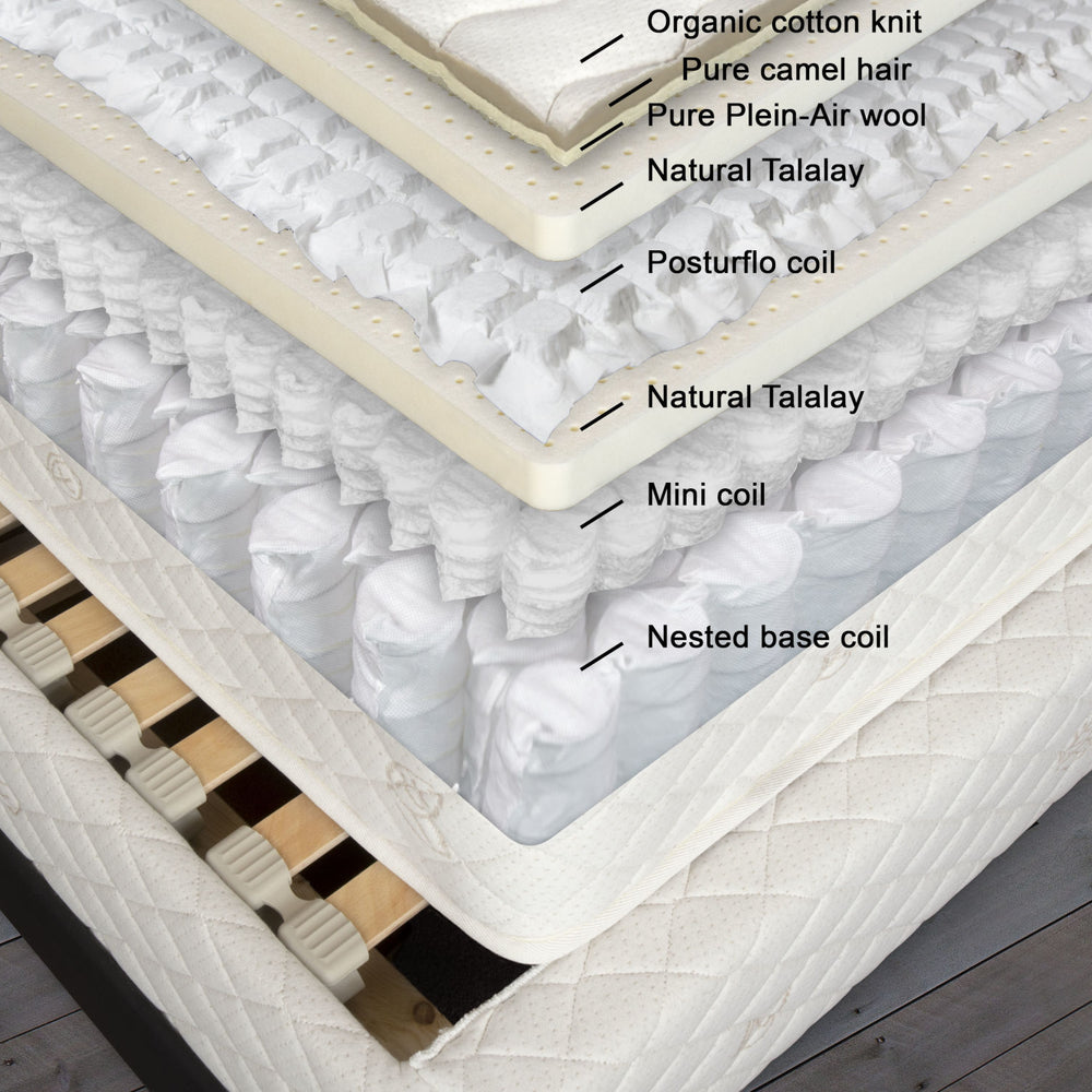 - Two layers of highly elastic natural Talalay latex are strategically located above and below the top layer of Posturflo micro coils